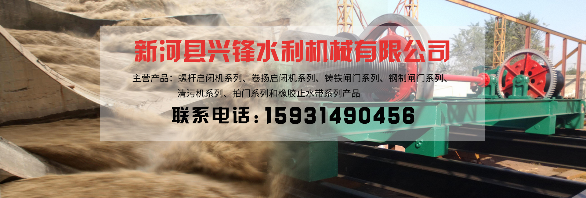 新河縣興鋒水利機械有限公司位于河北省新河縣城西距省會石家莊100公里處,毗鄰三零八國道,南靠青銀高速公路,交通十分便利。        我廠注重內抓管理,外樹形象,完善產品,規范市場,通過多年的艱苦奮斗,企業得到了充足的發展,無論在產品的品種上,技術性能上,還是市場運作上,都向前邁出了很大的步伐。現可生產水利用啟閉機、攔污柵、閘門、鋼閘門、橡膠止水帶,止水橡皮等四大系列,三百多個規格產品,且質量穩定,性能可靠。產品取得了質檢中心的合格證。通過了ISO9001-2000質量體系認證。我廠素以科學管理,技術先進,質量過硬,講究信譽而倍受用戶的高度評價。產品贏得了巨大市場。在國內幾大工程中使用效果非常良好。        一、QL螺桿式啟閉機        手推式:0.5-2T 側搖式:0.5-3T 手搖式:3-20T 手電兩用式:3-50T(單吊點、雙吊點)        二、QPQ、QPK卷揚式啟閉機        QPQ、QPK、QPG、QHQ型卷揚式啟閉機系列,并有單吊點、雙吊點和配有電驅動移動式,根據用戶要求加手搖設置,產品噸位為:5-160T可與平板、弧形閘門配套……